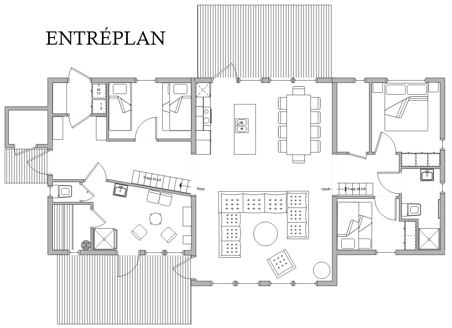 Planlösning optimerad för familjemys med fjällvärlden utanför fönstret
